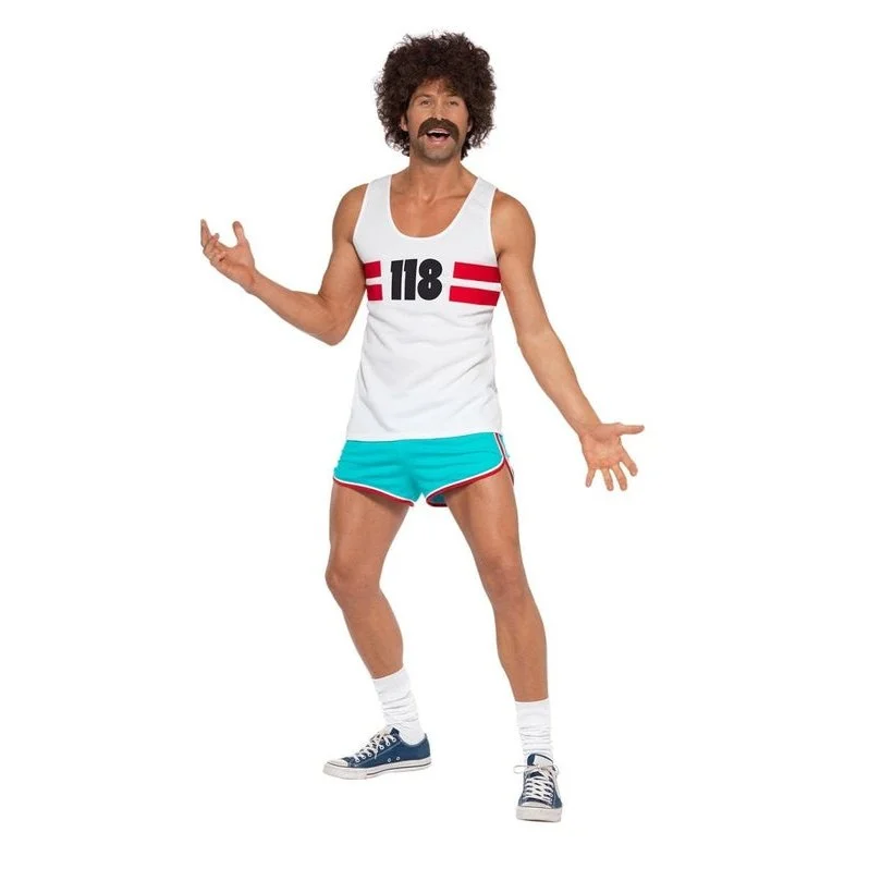 118 – give them a call it’s directory heaven, if you need a cab, their service is fab, if you fancy a curry, it’s there in a hurry! the funny 118 guys featured in the directory enquiries UK advert have arrived. Smiffys adult men’s 118 male runner fancy dress costume is a replicate from the advert. This amusing costume includes a pair of pale blue shorts and a white vest top with 118 on the front. Complete this look by adding our eighties tennis player wig. Please note: