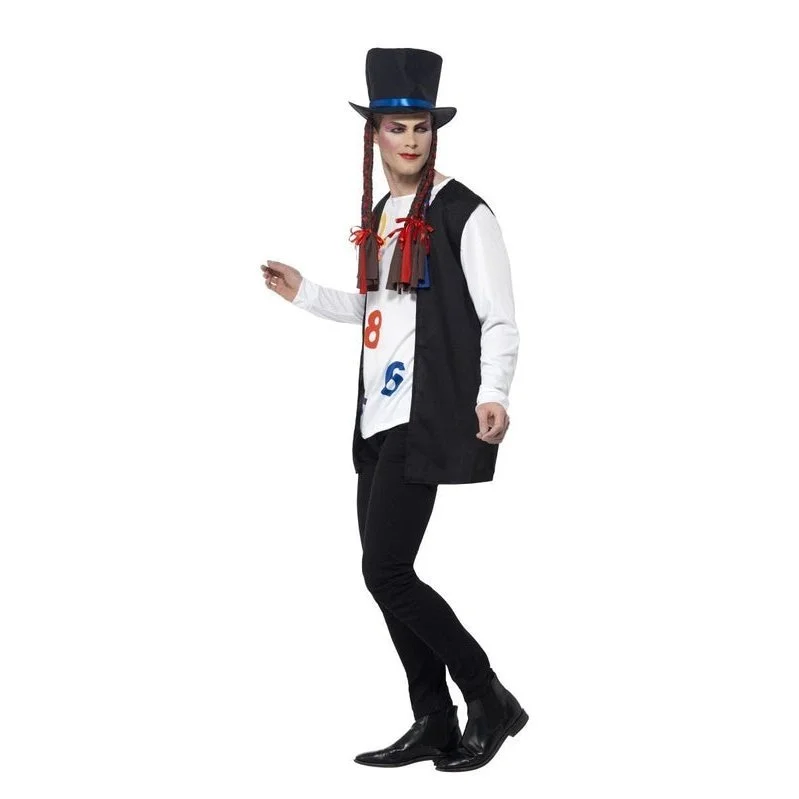 80s Pop Star Costume, Multi-Coloured, with Top, Waistcoat, Hat & Braids