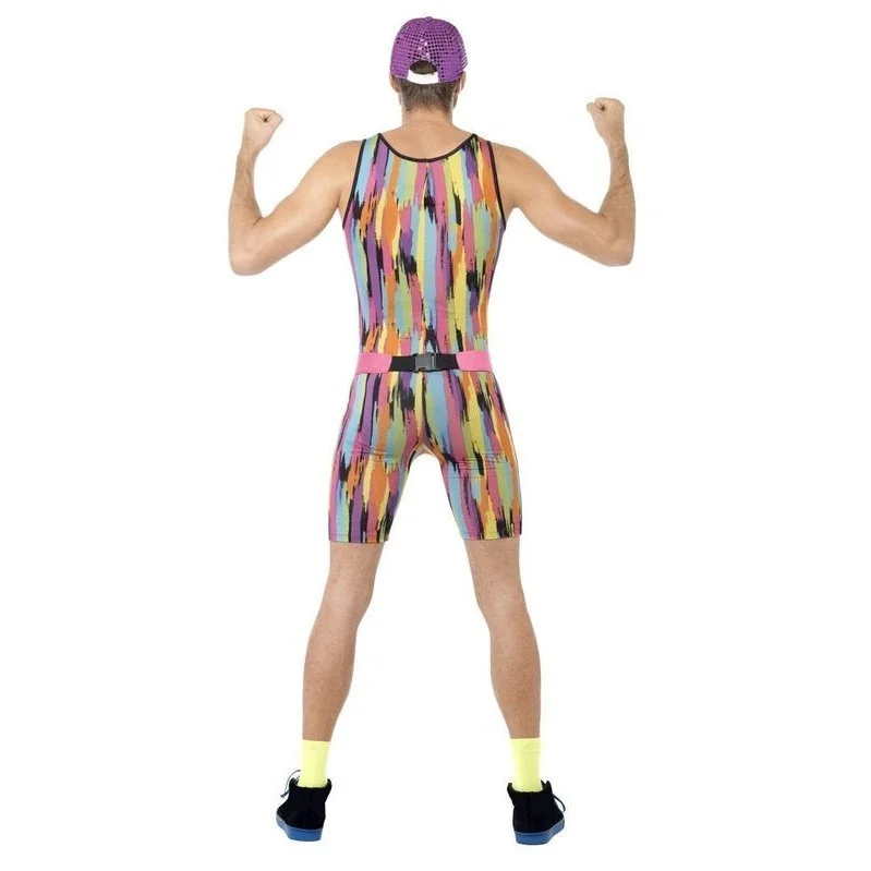 Aerobics Instructor Costume, Multi-Coloured, with Bodysuit, Hat & Bum Bag