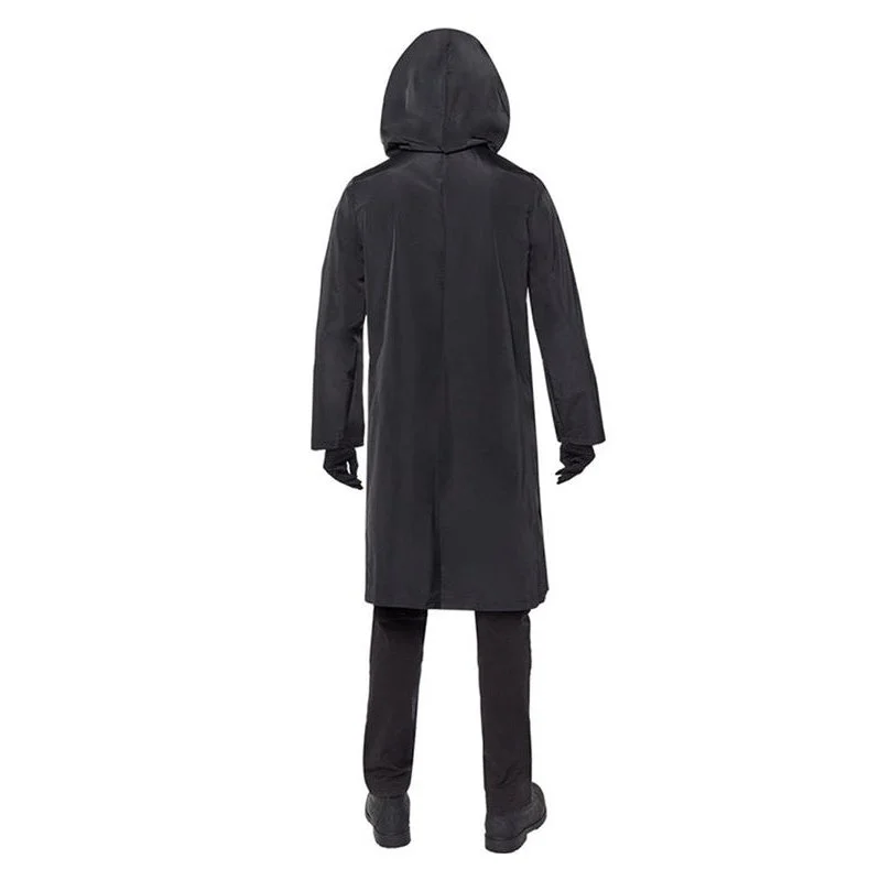 Become the leader of the Masked Men Guards in the Squid Game contest in this menacing Squid Game Front Man Adult Costume. The official costume is designed after the one seen in the hit Netflix series Squid Game and comes with a black hooded robe, a pair of black gloves and the iconic black geometric angled face mask. Put on a deep, menacing voice and let none interfere with the success of the games and you’re ready for a brutal Halloween.