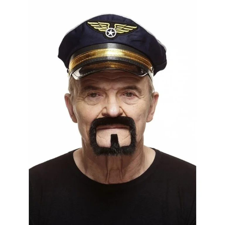 Black With Peppered Grey Goatee Moustache With Beard