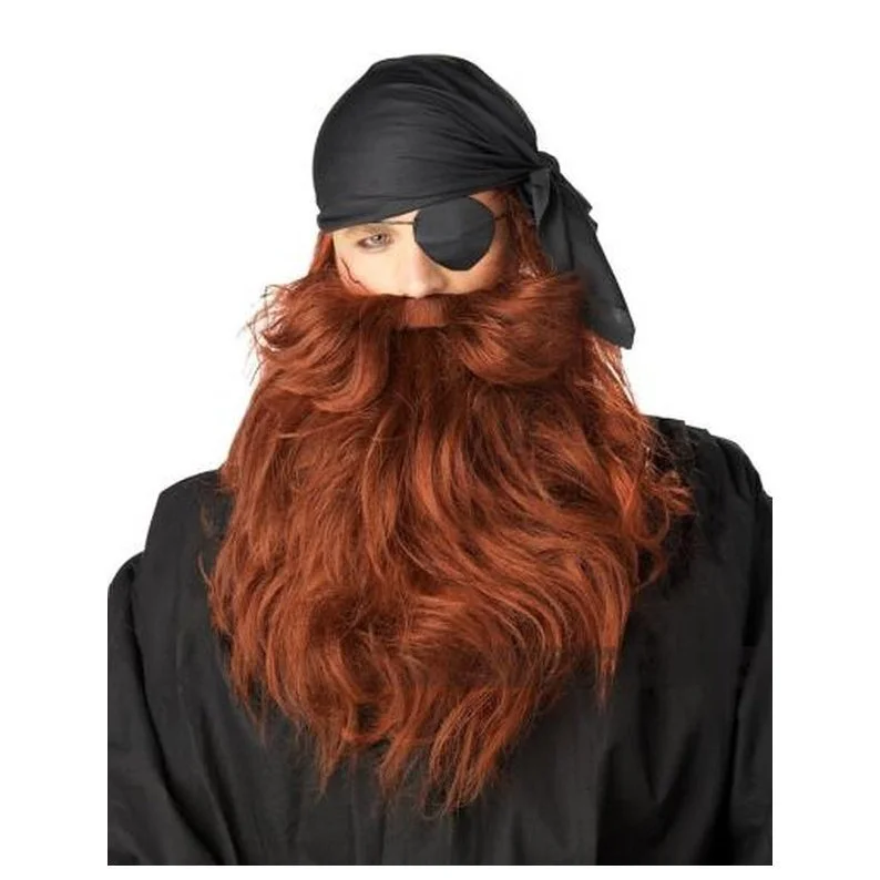 To be the scourge of at least one of seven seas is hard work. Keep your face warm with this Red Pirate Beard and Moustache. All you need to complete the look is an eye patch, and a wooden leg me hearty!