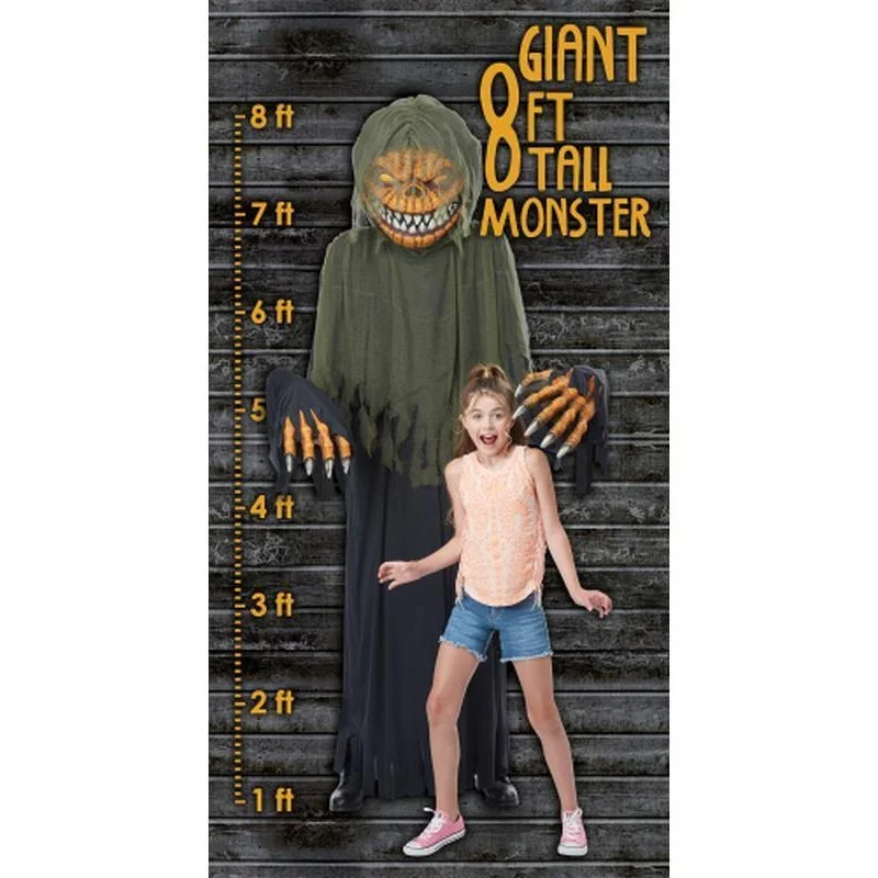 Robe with Hood, Pumpkin Mask, Inflatable Head/Shoulder Piece, Monster Hands, Inflatable Arms (for décor, 20 Ft. Cord (for décor)
