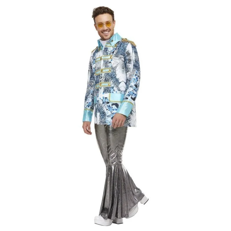 Carnival Jacket, White & Blue, Floral Print Design & Gold Trim