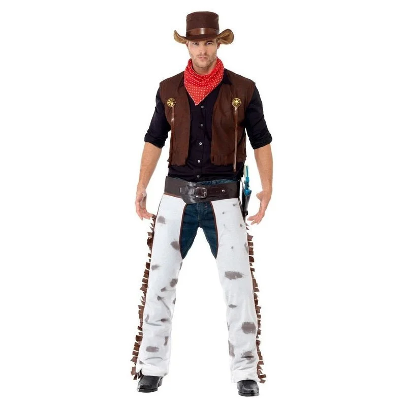 Cowboy Costume, Brown, with Waistcoat, Chaps, Scarf & Hat