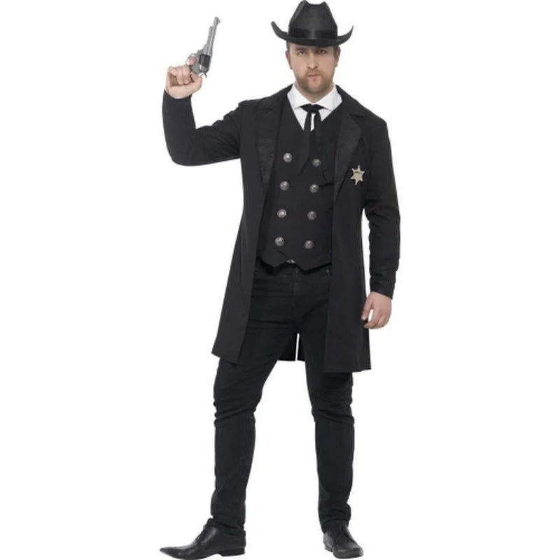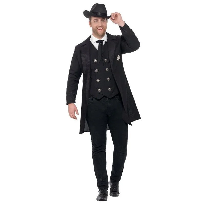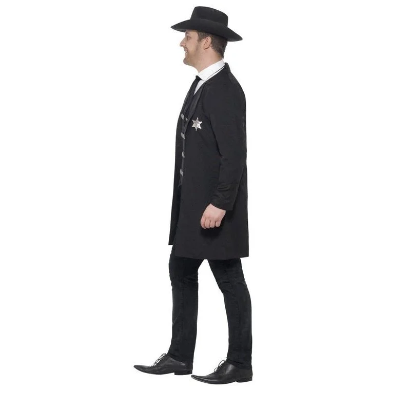 Curves Sheriff Costume, Black, with Jacket, Waistcoat, Neck Tie & Hat