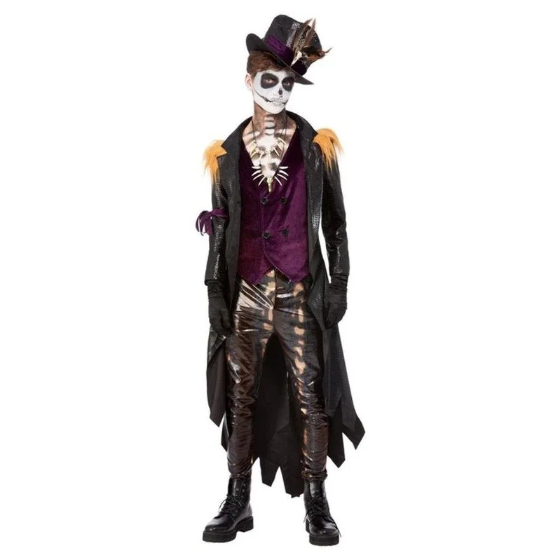 Deluxe Voodoo Witch Doctor Costume, Black & Purple, Jacket, Mock Top, Trousers, Hat & Necklace