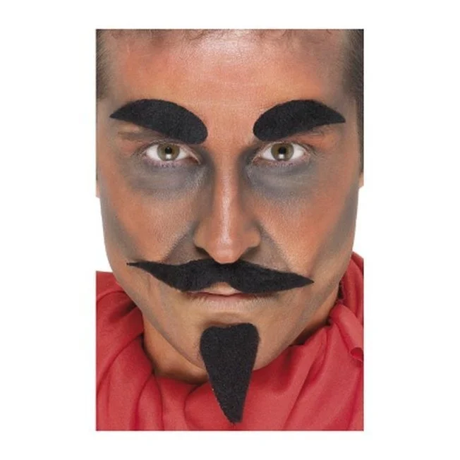 Devil Facial Hair Set, Black, with Tash, Brows & Beard