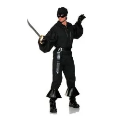 Jumpsuit with padded belly, hat, pair of gloves and faux moustache.