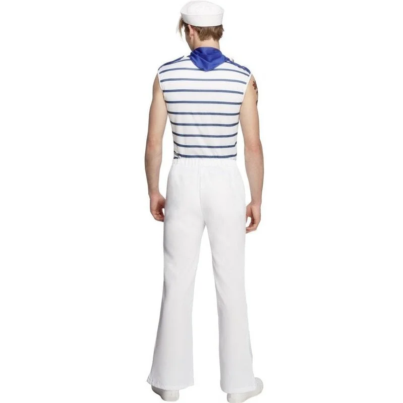 Fever Male French Sailor Costume, White, with Top, Trousers and Neck Scarf