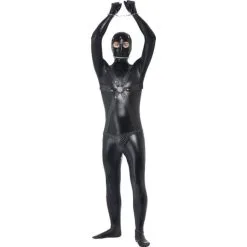 Gimp Costume, Black, Bodysuit with Straps and Chainmail Pants