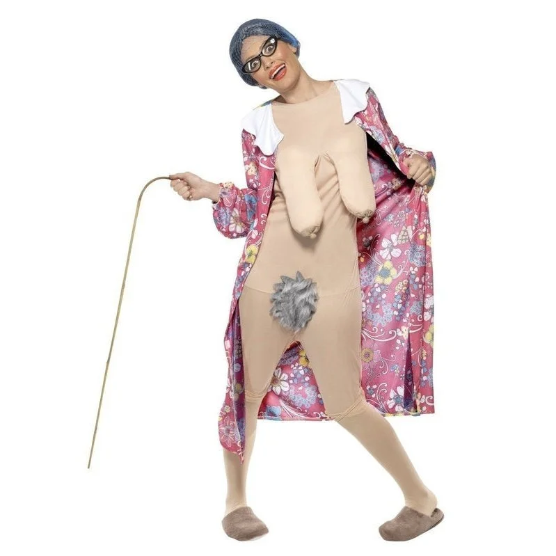 Gravity Granny Costume, Patterned, with Dressing Gown & Bodysuit