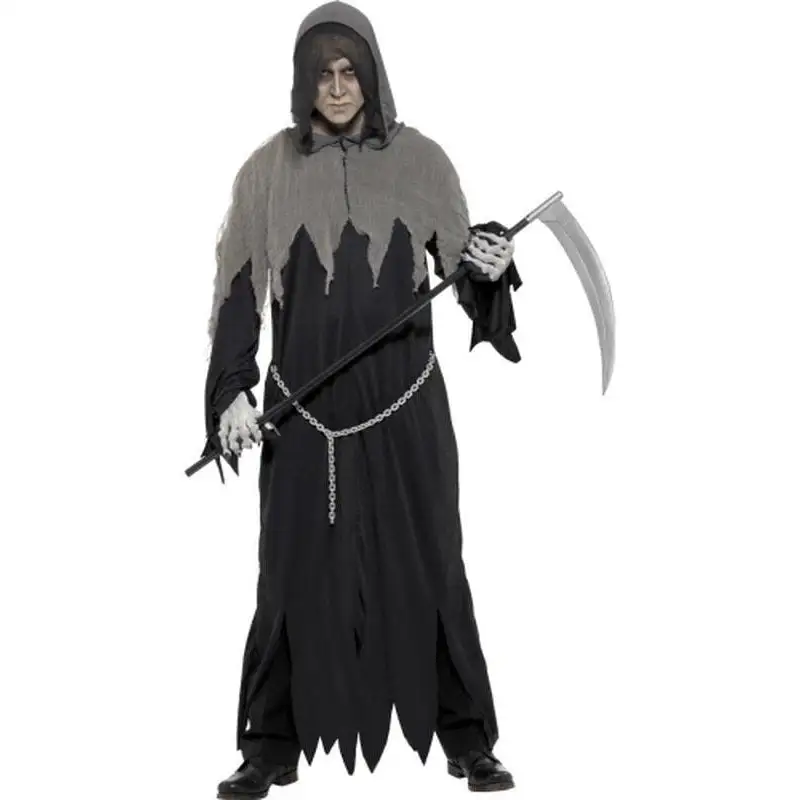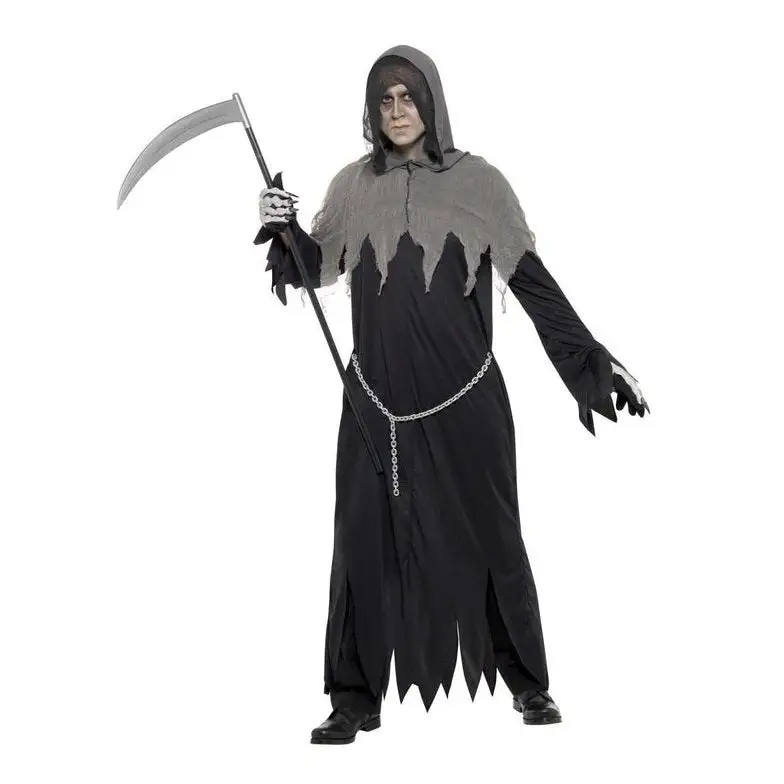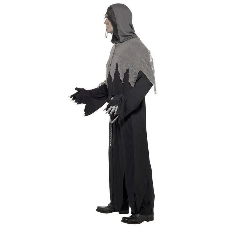 Grim Reaper Robe Costume, Black, with Hooded Robe & Chain