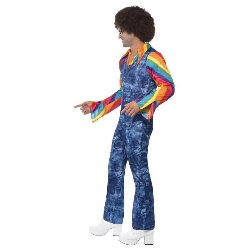 Groovier Dancer Costume, with Denim Effect Jumpsuit and Mock Shirt