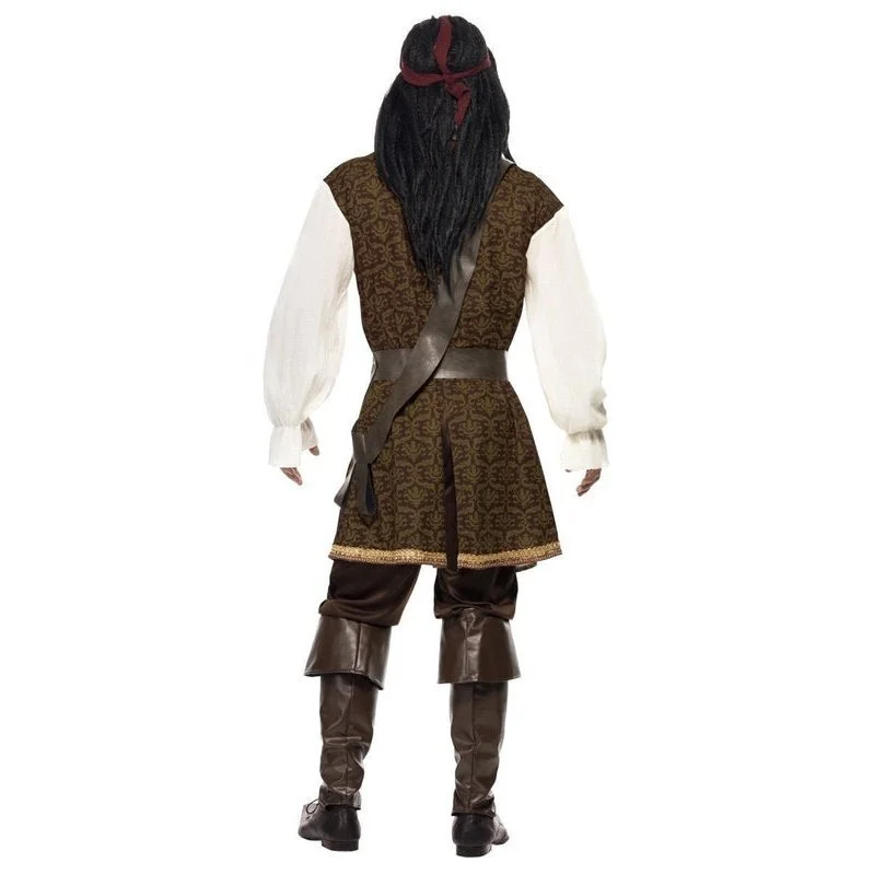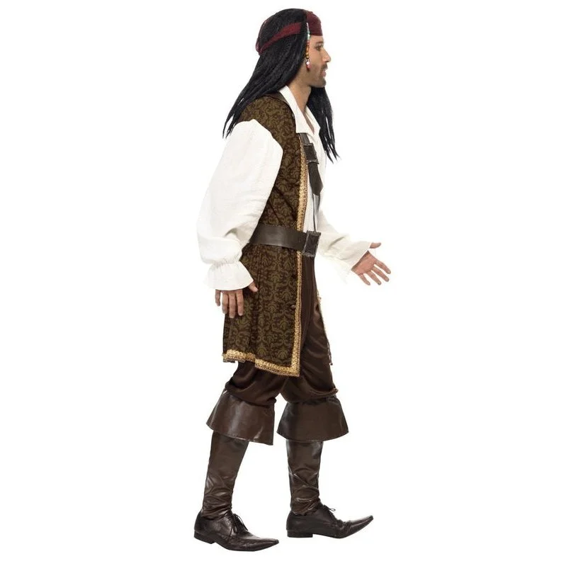 High Seas Pirate Costume, Brown, Top, Short Trousers, Baldric, Belt & Headscarf