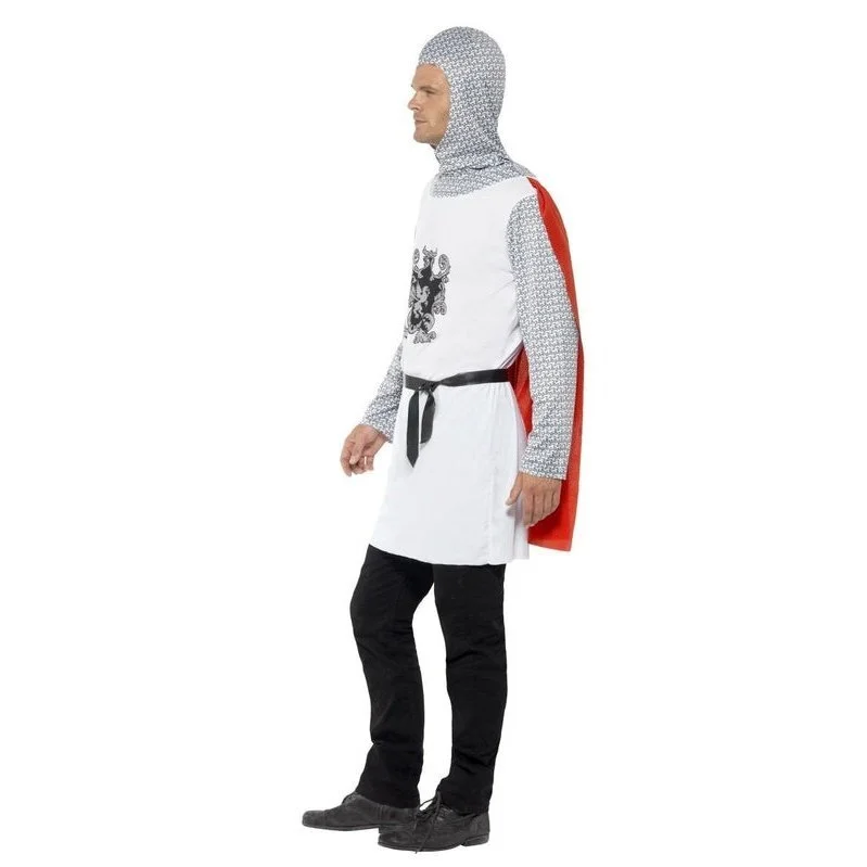 Knight Costume, Economy, White, Top with Attached Cape, Belt & Hood