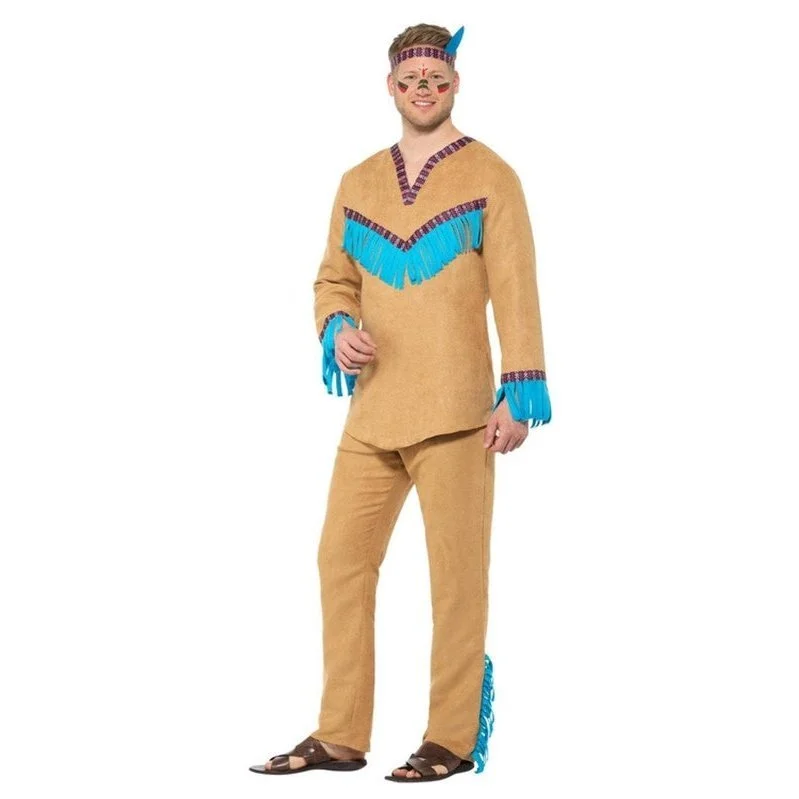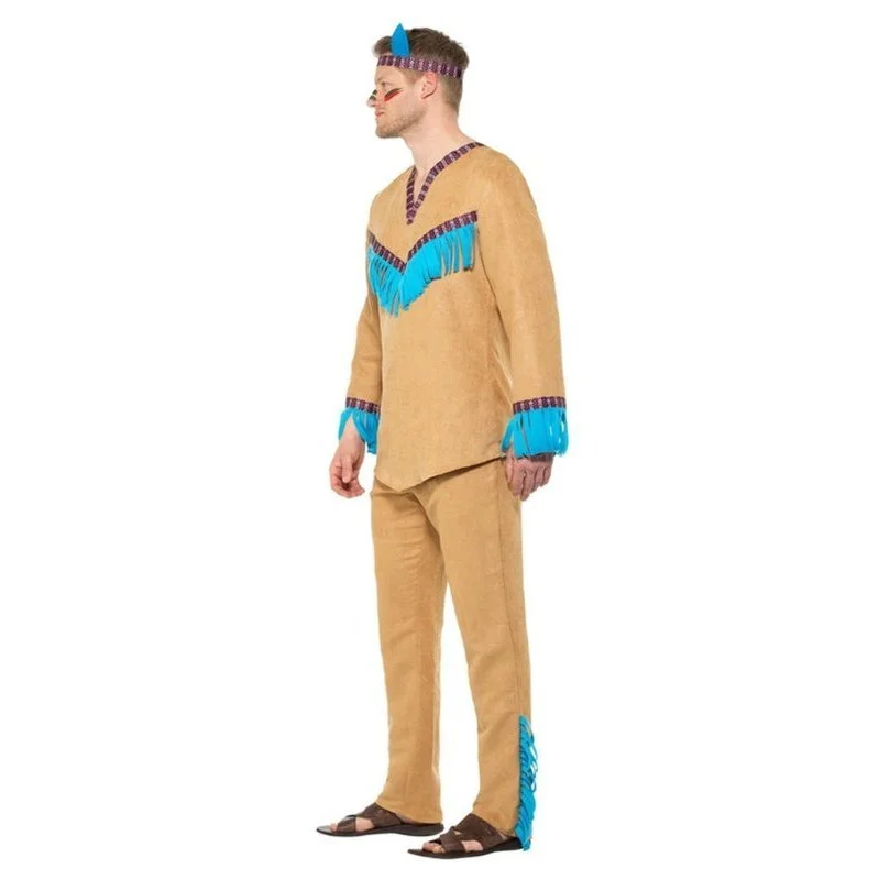 Native American Inspired Warrior Costume, Blue & Brown, with Top, Trousers & Headband