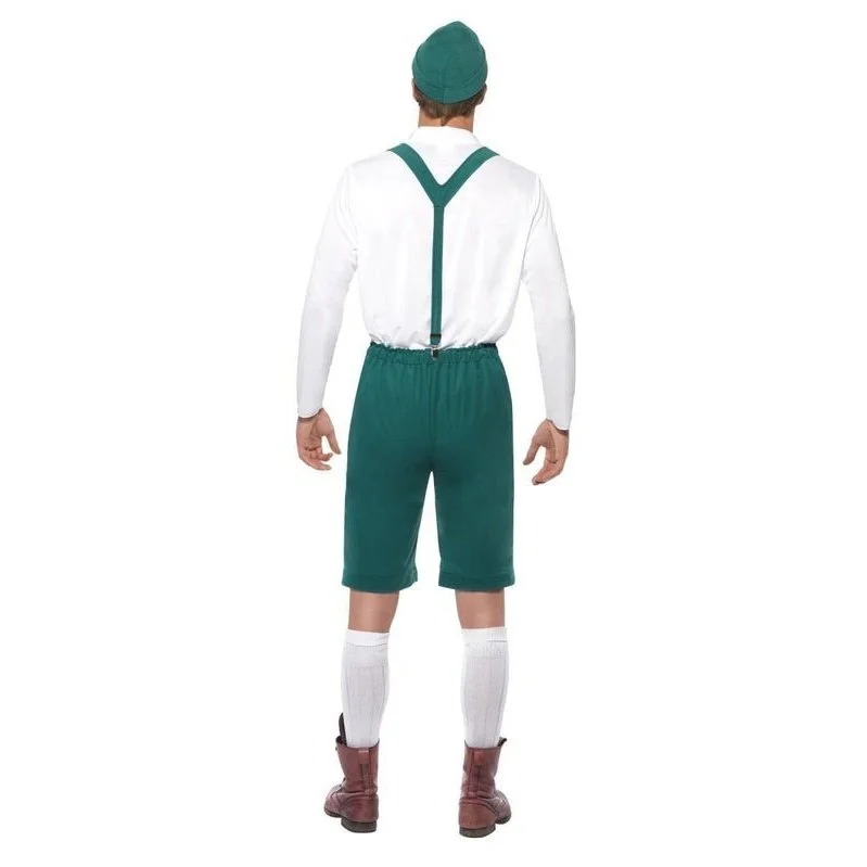 Oktoberfest Costume, Green, Lederhosen Shorts with Braces, Top and Hat
