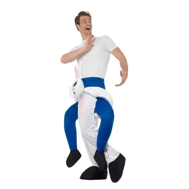 Piggyback Rabbit Costume, White, One Piece Suit with Mock Legs