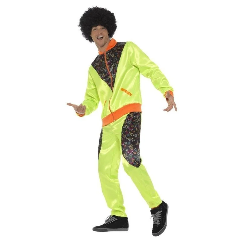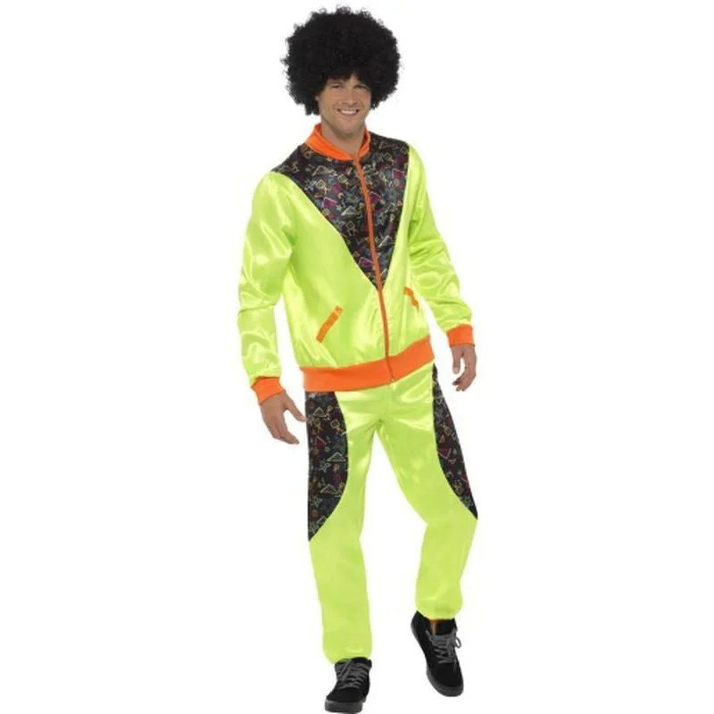 Retro Shell Suit Costume, Mens, Neon Green, with Jacket and Trousers