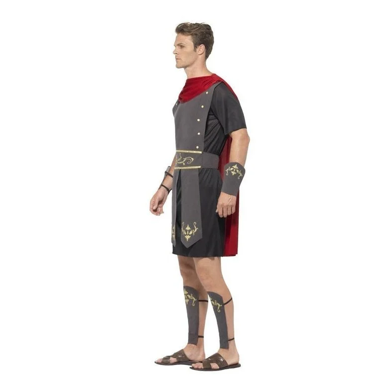 Roman Gladiator Costume, Black, with Tunic, Attached Cape, Arm Cuffs & Leg Cuffs