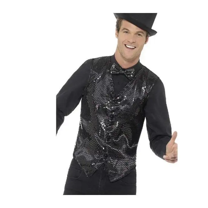 - Includes Sequin Waistcoat, Black