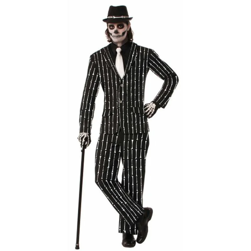 Halloween costume concerns? Fear not, this bone pin striped suit will have you jumping out of your skin this Halloween