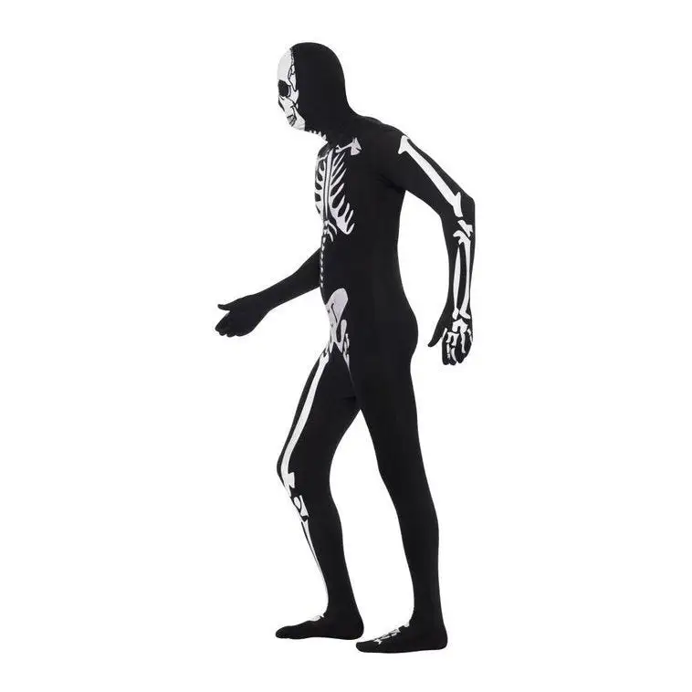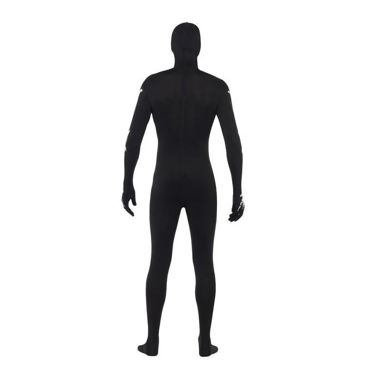Skeleton Second Skin Costume, Black, with Concealed Fly & Under Chin Opening, GID
