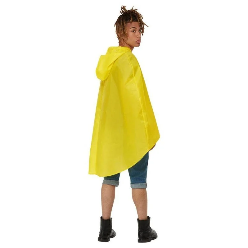 Smiley Party Poncho, Yellow & Black, Poncho & Drawstring Bag