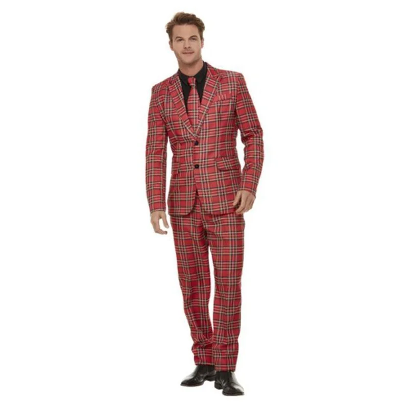 Tartan Suit, Red, Jacket, Trousers & Tie