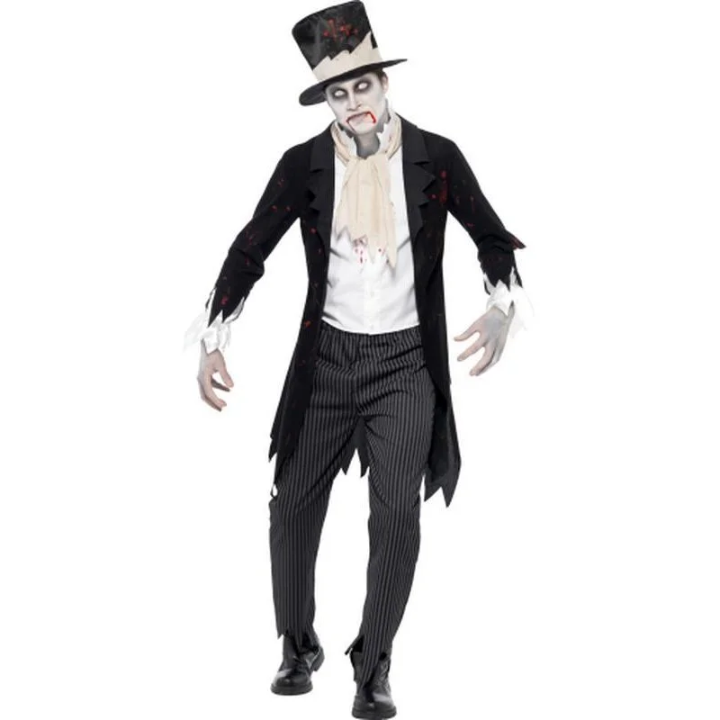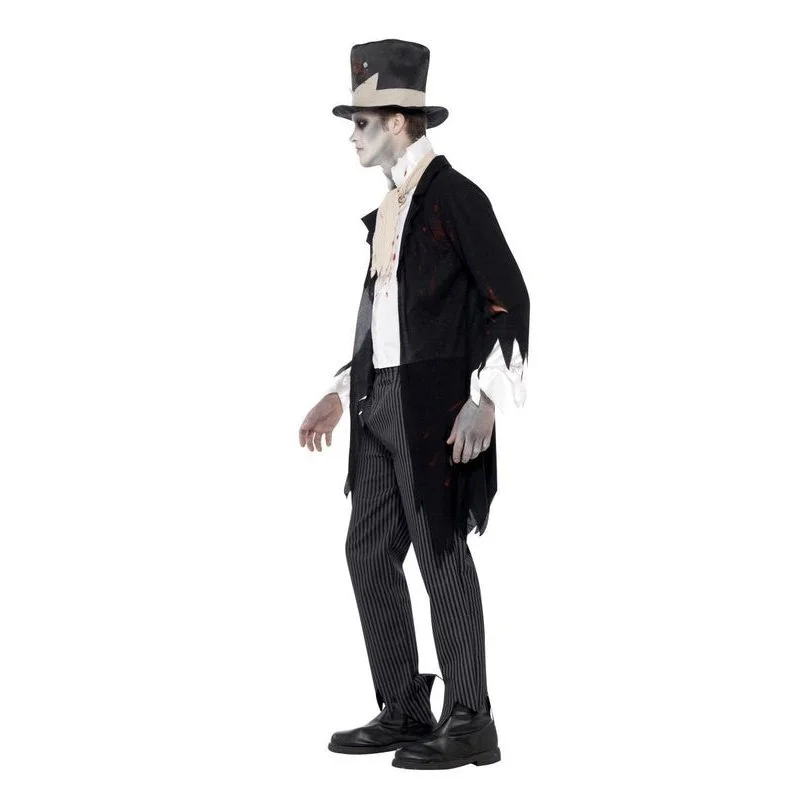 Till Death Do Us Part Zombie Groom Costume, Black, Jacket with Waistcoat, Scarf, Trousers and Top Hat