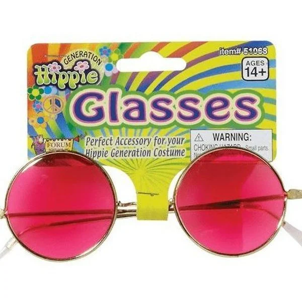 Groovy pink John Lennon inspired glasses made by Forum Novelties. Add these 60/70’s pink hippie glasses to any 19760’s/1970’s costume for a perfect finishing touch.