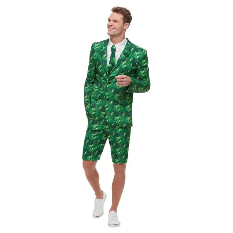 Tropical Palm Tree Suit, Green, with Jacket, Shorts & Tie